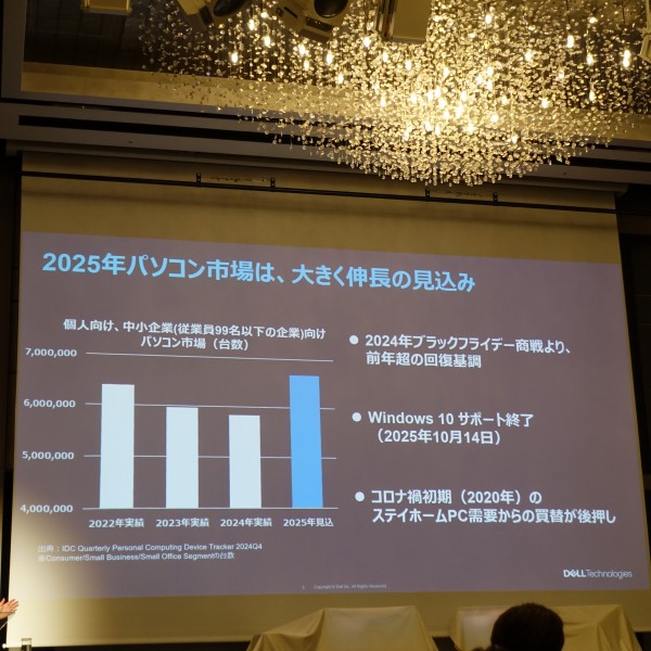 ![]() 2025年は、Windows 10サポート終了/コロナ禍初期(2020年)に購入されたPCの買い換え/AI対応PCに対する需要の高まりから、買い換えニーズが高まり、PC販売数が大幅に増える見込みとのこと。