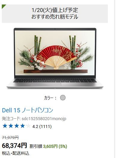 ![]() コスパ重視の15インチPC Dell 15が5%で購入できます。 Dell 15詳細情報はこちら。