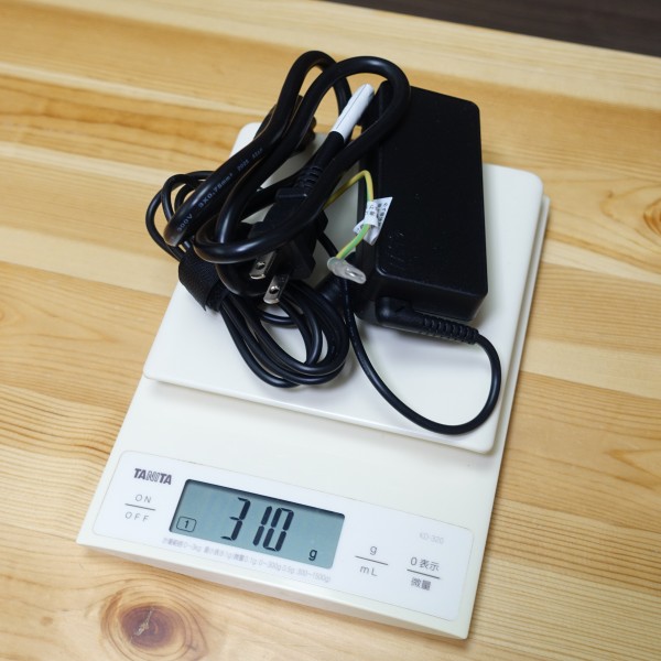 ACアダプタと電源ケーブルを合わせた重量は310g。