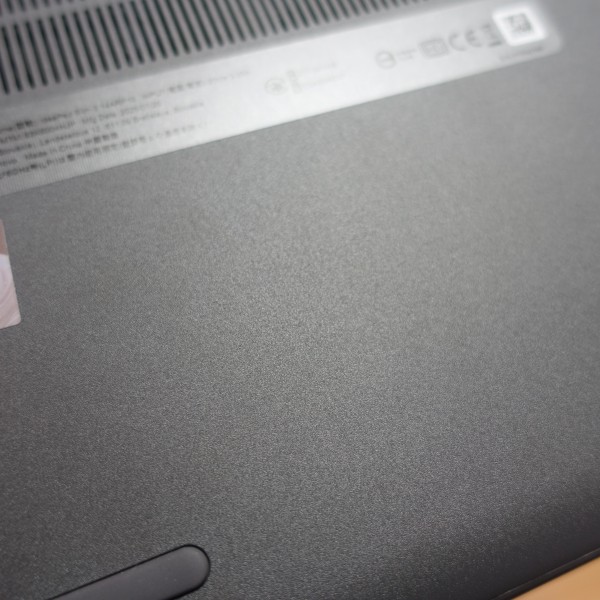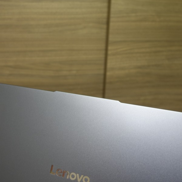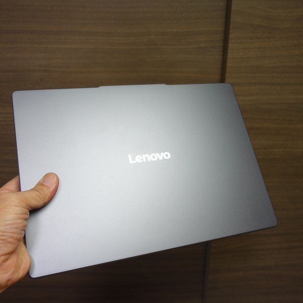 光があたると反射します。天板部中央に「Lenovo」のロゴを配置。結構目立ちますね。