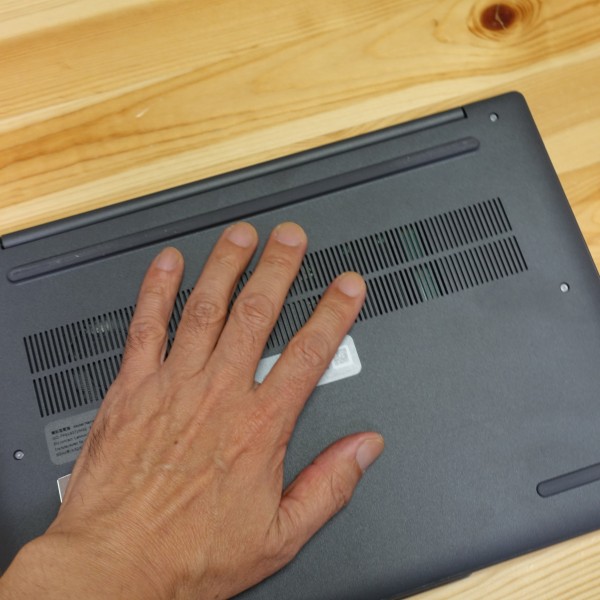 熱については、FF15ベンチマーク実行直後、通気孔のある底面部を触ると、ほんのり温かい程度で熱くて触れないほどではありませんでした。