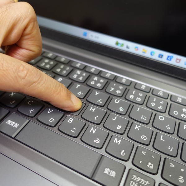 キーピッチ(キー間の距離)はあまり窮屈な感じはしません。ストレスなくタイピングできましたね。