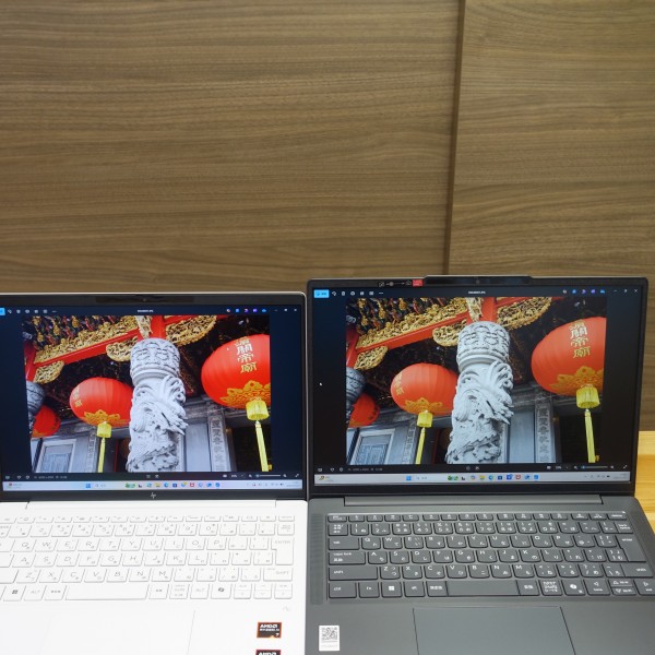 ![]() レビュー機のパネルの方が、暖色系がちょっと黄色っぽく表現されている感じです(上の画像の左:色域sRGB100%の13.3インチノートPC(縦横比16:10)/右:レビュー機(16インチ/45%NTSC/縦横比16:10))。