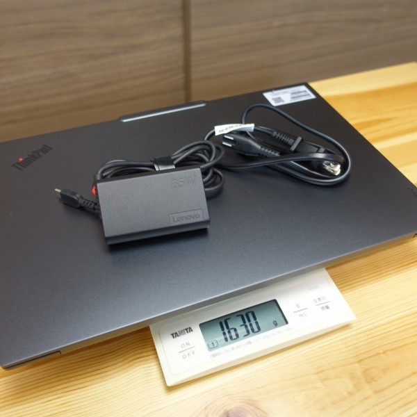 本体を合わせた重量は1.63kg(実測値)。