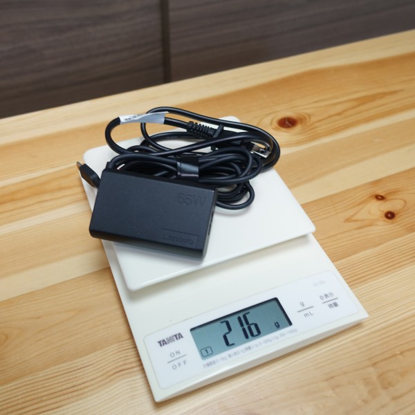 ACアダプタと電源ケーブルの重量は216g(実測値) 。