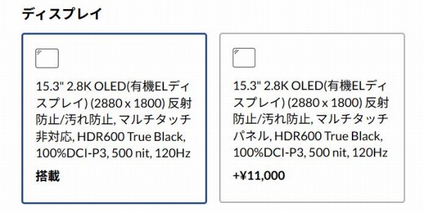 本モデルは2.8K(2880 x 1800ドット)のパネルのみを選択可能。
