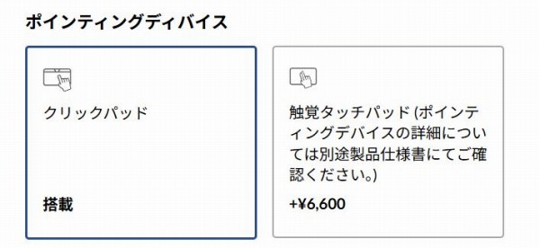 一般的なタッチパッドのほか、触覚タッチパッドも選択できます。