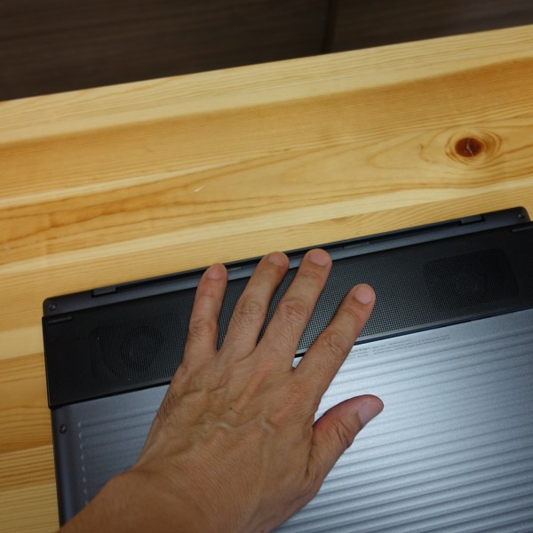 キーボード上部も少し温かくなりますが、パームレスト部分に熱はほとんど感じませんでした。
