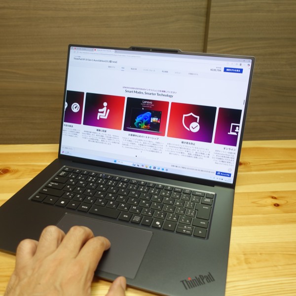 ・15.3インチパネル搭載 ・このクラスのPCとしてはスリム/軽量 ・AI専用NPU内蔵のインテルCore Ultraプロセッサ搭載 ・Copilot+PC準拠モデル ・グレーをベースとした洗練されたデザイン ・赤色のトラックポイントなし ・OLEDパネル搭載 大きめの15.3インチパネル搭載モデルですが、 重量が1.414kg(実測値)しかなく、スリムなので、個人的には外に持ち出して使えると思います。 インテルCore Ultraシリーズ2プロセッサを搭載したCopilot+PC準拠モデル。色表現の鮮やかなOLEDパネルを搭載しており、映像を楽しめると思います。質感の高いデザインを採用しており、見た目の満足度も高いですね。 価格はちょっと高めに設定されていますが、高級感のあるデザインに仕上がったAI処理性能の高いPCを探している、 画面は大きめがいいが一定の機動性を確保できるモデルがいい、という人にオススメしたいですね。 *レノボWebサイトの製品ページを確認する