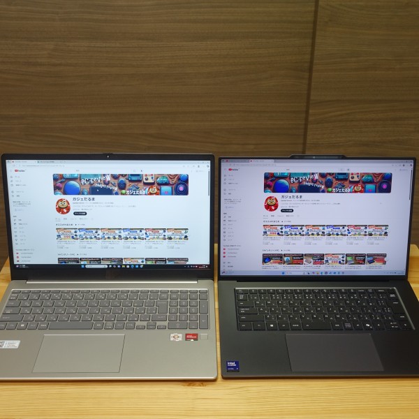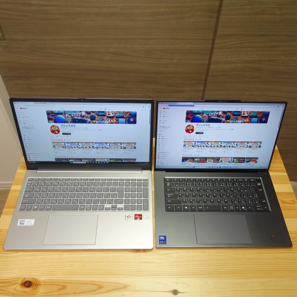 16:9のパネルを搭載した15.6インチPCと比べてみました(左:縦横比16:9の15.6インチパネルPC/右:レビュー機(縦横比16:10の15.3インチPC))。