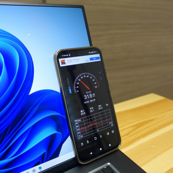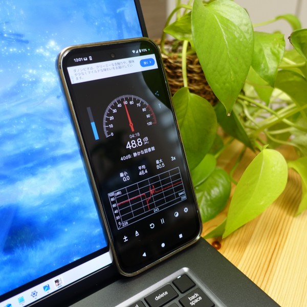 ネットを見るなど一般的な使い方をしているときは27-33dB程度で静か。僕が使用した限りでは、ファンの音はほとんど聞こえてきませんでした(*スマホのアプリなので数値が正確ではない可能性があります)。