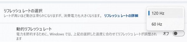 リフレッシュレートは最大120Hz。