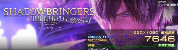 負荷が中程度のベンチマーク「ファイナルファンタジー14 漆黒の反逆者」の結果は、最高品質で「非常に快適」。