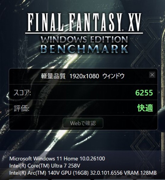 レビュー機のスペック:インテル Core Ultra 7 258V/32GBメモリ/1 TB SSD/インテルArcグラフィックス(CPU内蔵) ![]()