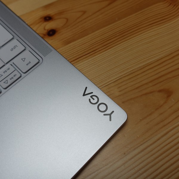 パームレストの右端に「YOGA」のロゴを配置しています。