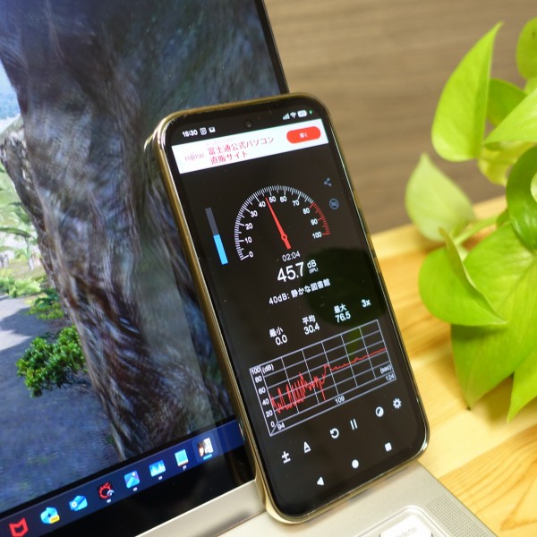 ネットを見るなど一般的な使い方をしているときは16-22dB程度で静か。
