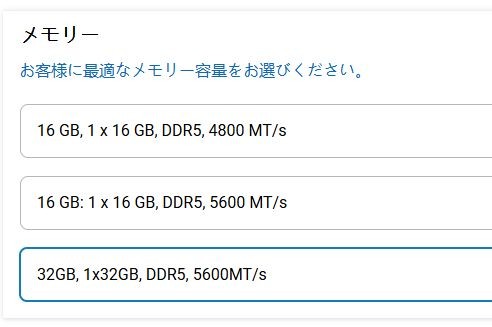 メモリは16GB(16GB×1)/32GB(32GB×1)搭載モデルが用意されています。