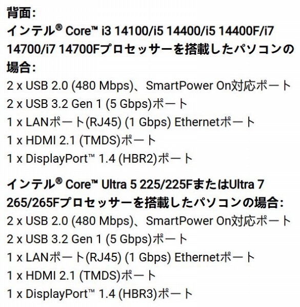 搭載しているCPUにより端子類の仕様は異なります。