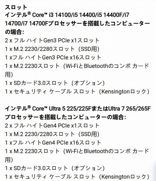 搭載しているCPUにより、スロット類の仕様が異なります。