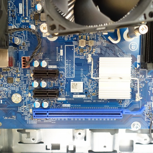 CPUファンの下には、PCIe x1が2スロットとPCIe x16 が1スロットの合計3つのスロットを配置。
