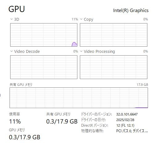 レビュー機はNVIDIA GeForceグラフィックス搭載モデルではないので、描画処理能力はそこまで高くはありません。