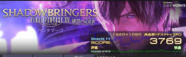 負荷が中程度のベンチマーク「ファイナルファンタジー14 漆黒の反逆者」の結果は、「高品質」で「快適」、「最高品質」で「やや快適」。