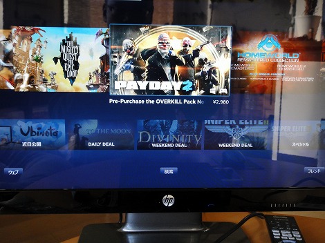![]() 最近人気を集めている世界最大のオンラインゲームプラットフォームSteamのWebサイトに直結しているため、Steamで提供されているゲームをダウンロードして楽しむことができます。 3-2)リビングで手軽にPCゲームを楽しめる