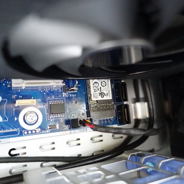 ![]() 上の写真の右上に3.5インチドライブベイが縦向きに配置されています。