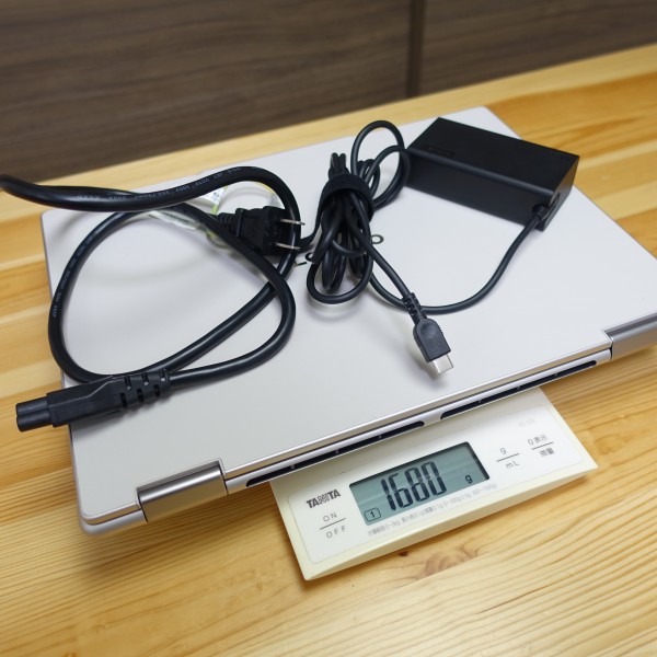 2-in-1タイプの14インチノートPCとしてはそんなに重くはない印象です。