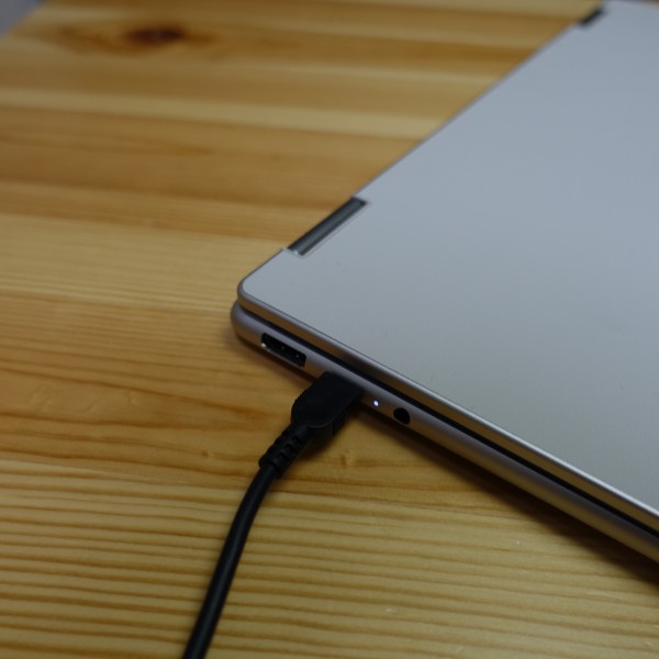 左右の側面部に1つずつあるType-C端子のいずれに接続しても充電できます。