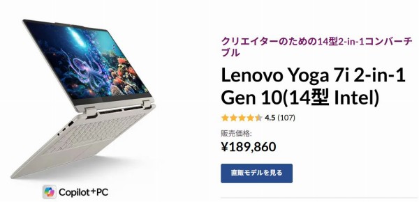 レノボYoga 7i 2-in-1 Gen10(14型 Intel)は、レノボのIdeapad Slimシリーズの14インチOLEDパネル搭載ノートPCです。 ![]() 【プロモーション/貸出機材提供:レノボ・ジャパン合同会社】
