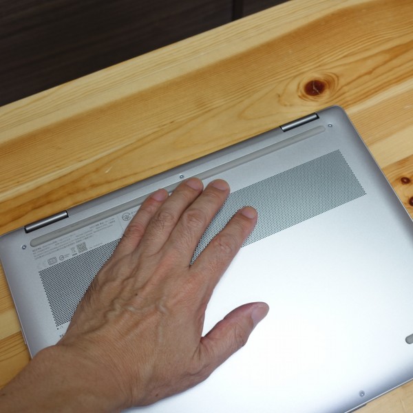 FF15ベンチマーク実行直後、通気孔のある底面部を触ると、少し温かく感じましたが、熱くは感じませんでしたね。