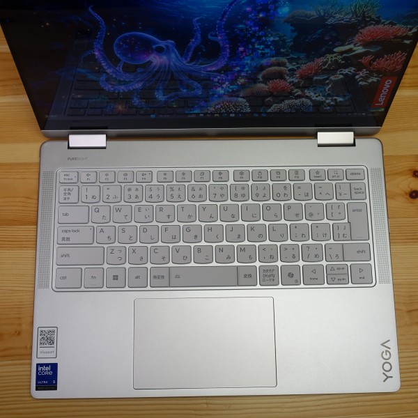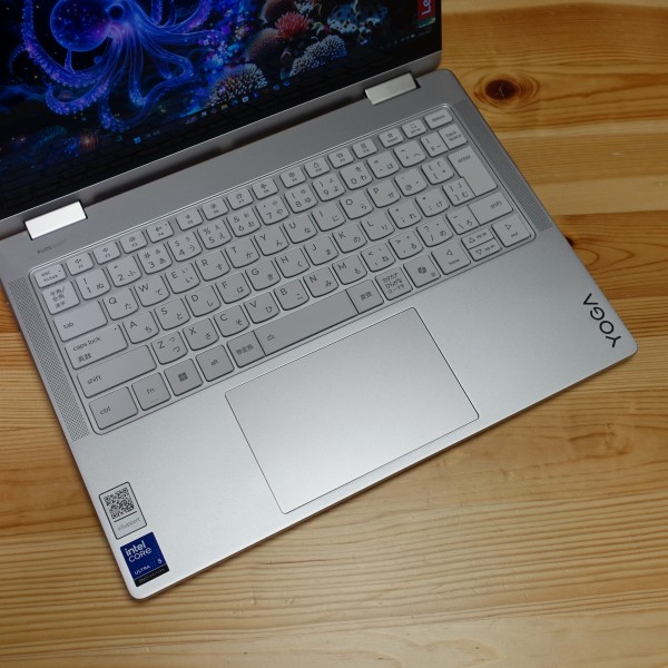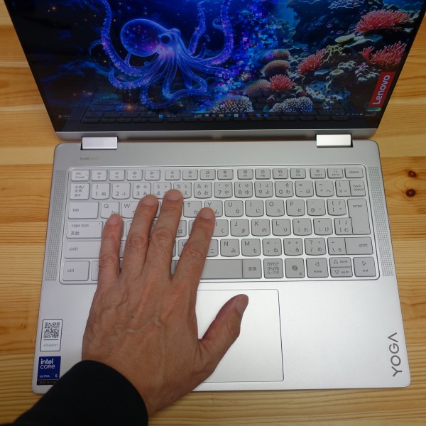 パームレストの右端に「YOGA」のロゴを配置しています。