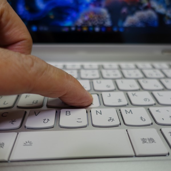 ![]() キーストローク(キーを押し込む深さ)は約1.5mm。個人的には少し浅めに感じました。キートップはちょっとつるつるした感じで滑りがいいと思います。打鍵感は柔らかめですが少し反発があり、キビキビタイピングできる印象を受けました。打鍵音は標準レベルで、すごく耳障りな感じはしませんでしたね。