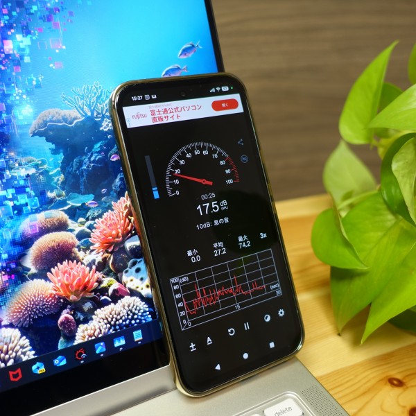 ネットを見るなど一般的な使い方をしているときは16-22dB程度で静か。
