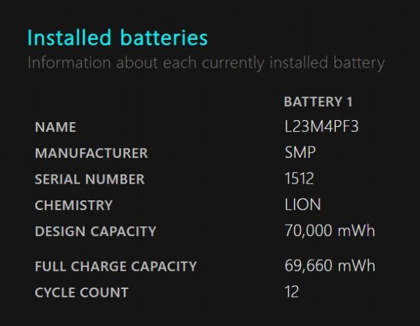 本モデルには70Whのバッテリを搭載。