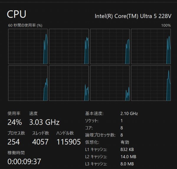 本モデルは、インテルCore Ultra 5 228Vを搭載。