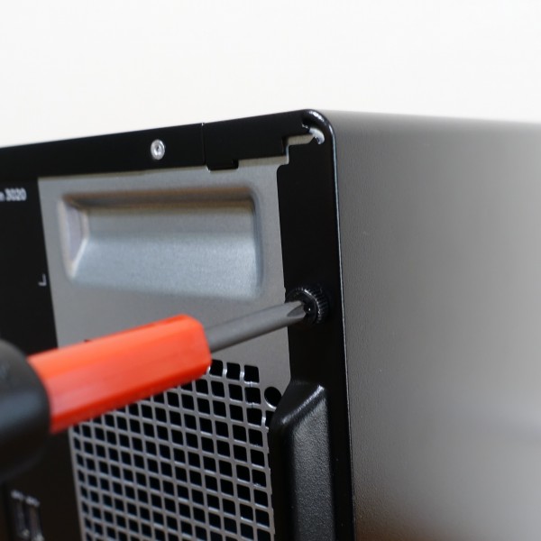 Inspironデスクトップ(3020)は、背面部の右にある2つのネジを外すだけで、簡単に筐体内部にアクセスできるよう設計されています。