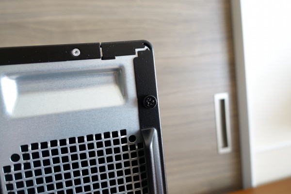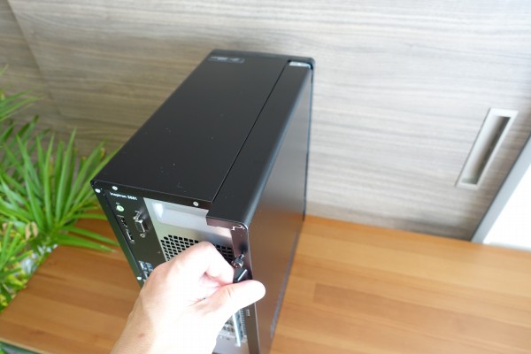 Inspiron 3881コンパクトデスクトップは、背面部にある2つのネジを外すだけで、簡単に筐体内部にアクセスできます。