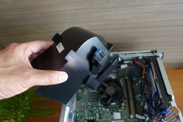 ![]() ファンエアフローカバーが装着されたままだと、隣にあるメモリスロットなどにアクセスしづらいので、簡単に取り外せるようになっています。