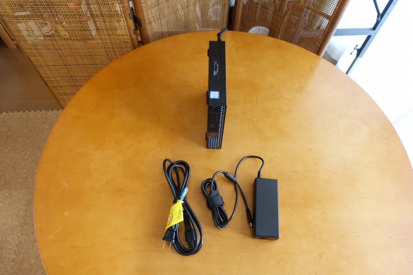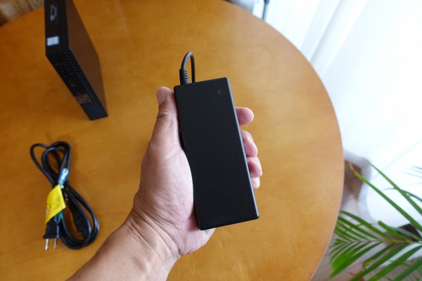 OptiPlex 7070マイクロデスクトップは、本体がコンパクトなだけに同梱されるACアダプタもコンパクトなつくりになっています。