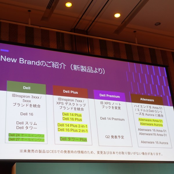 今までDellのエントリシリーズは「Inspiron」でしたが、今回より「Dell」ブランドに変更され、Inspironの上位の7000シリーズが「Dell Plus」という名前に変更されました。