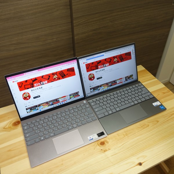 ![]() 縦横比16:9の13.3インチパネル搭載ノートPCを並べてみました。上の画像の右がレビュー機。縦方向にパネルが大きいのが分かります。