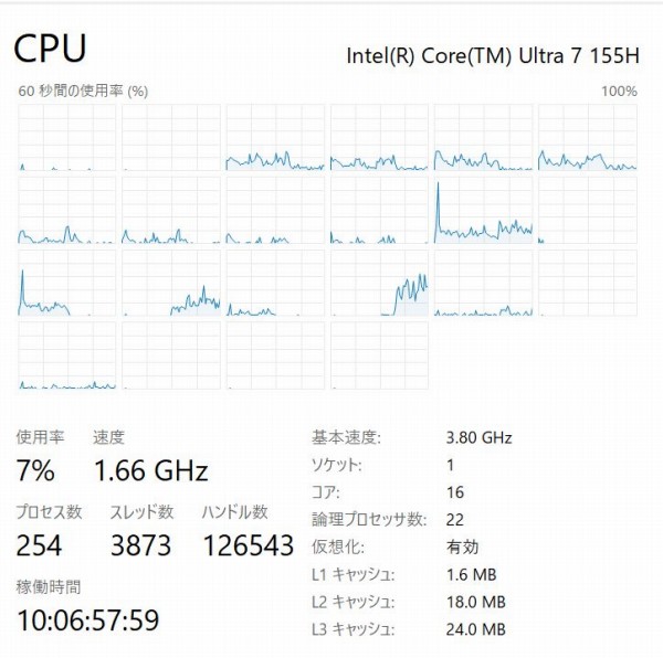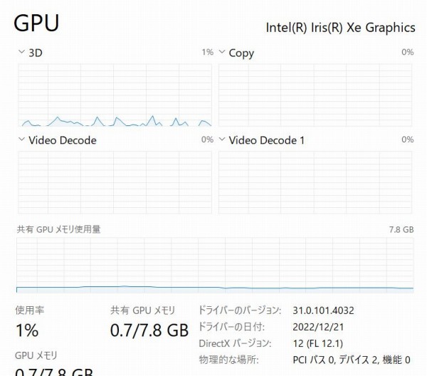 ![]() Core Ultraプロセッサ搭載モデルにはインテルArcグラフィックスが搭載されています(上の画像はCore Ultra 7 155Hに搭載されているインテルArcグラフィックス)。