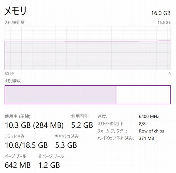 ![]() レビューした第13世代インテルCore i5-1340P搭載モデルには16GBメモリを搭載。LPDDR5メモリで、速度は4800MHzです。