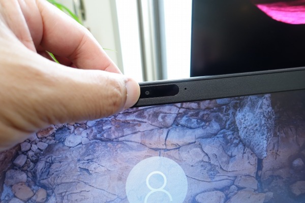 【搭載している端子類】 Latitude 5300に搭載されている端子類は次のとおり。 ■USB Type C 3.1 Gen 2(電源供給およびDisplayPort対応) ■USB 3.1 Gen 1 x 2(1ポートはPowerShare対応) ■ユニバーサル オーディオ ジャック x 1 ■HDMI 1.4 x 1 ■RJ45(LAN)×1 USB端子は全部で3つ。従来のType-A端子が2つ、Type-C端子が1つです。 映像出力端子として、HDMI端子に加え、DisplayPort対応のUSB Type-C端子も利用できます。いずれかの端子を使って、モニタに接続することで、広い画面で効率的な作業を行うことができます。 【起動時間】 起動(電源ボタンを押してからデスクトップ画面が表示されるまで)を計測。 1回目→13.78秒 2回目→13.82秒 3回目→13.92秒 約14秒で起動するため、そんなに待たされる感じはしないですね。 【Webカメラ格納可能】 ![]() Latitude 5300では液晶上部にWebカメラを配置していますが、ハッキングによる盗撮を防ぐため、手動でWebカメラを隠すことができます。 ![]() カメラの左にあるレバーをずらすだけで、 ![]() 簡単にWebカメラを格納できます。格納された状態では、カメラの位置に赤い丸が表示されるため、一目でWebカメラがどの状態にあるのかを確認できます。 【サウンド】 Latitude 5300はビジネス向けノートですがサウンドにもこだわっています。 ![]() サウンドにはWAVES MaxxAudio Proテクノロジーを採用。このテクノロジーのおかげで、より深みのあるサウンドを楽しむことが可能。 同梱されているアプリケーションのイコライザを使えば、自分好みにチューニングすることもできます。 ![]() スピーカーは、前面部の下の左右に配置されています。 ![]() この位置にスピーカーがあると、音が床で反射する形になるため、広がりのあるサウンドを楽しめます。 音楽を聴いてみましたが、シャカシャカする感じもなく、非常に聞きやすい。高音/低音のバランスも良く、ビジネスノートPCとしては十分なレベルのサウンドだと思います。 5)各パーツをチェック