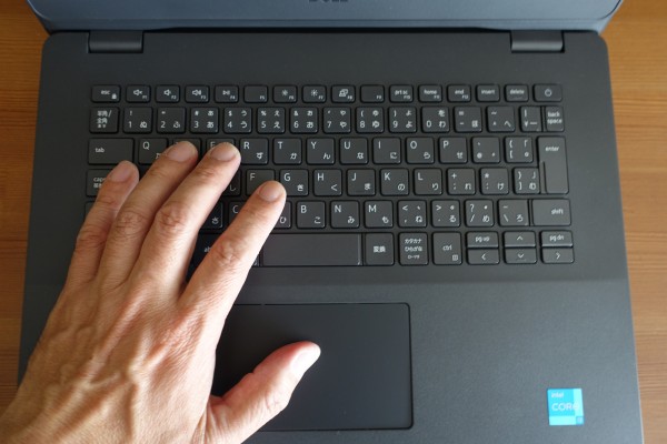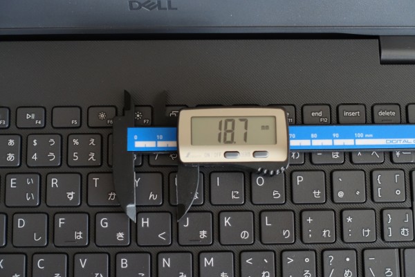 キーストローク(キーを押し込む深さ)は、個人的にはちょっと浅く感じますが、最近のノートPCとしては標準的な深さでしょう。 打鍵感はやわらかめです。 ![]() キーピッチ(キー間の距離)は18.7mm。