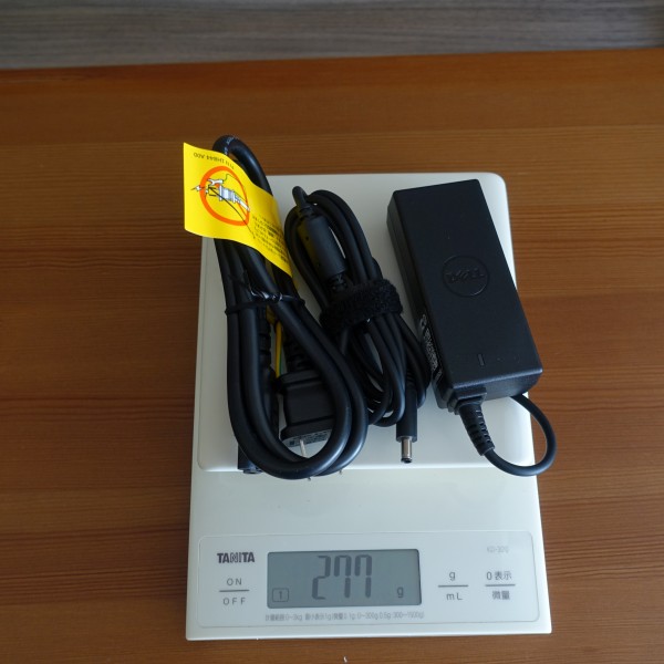 ![]() ACアダプタと電源ケーブルを合わせた重量は277g。
