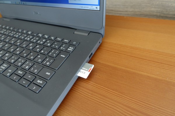 ![]() SDカードリーダーに、SDカードを奥まで差し込んだところ。これだけ外にはみ出すので、SDをカードを挿した状態で本体を動かす場合には注意が必要です。