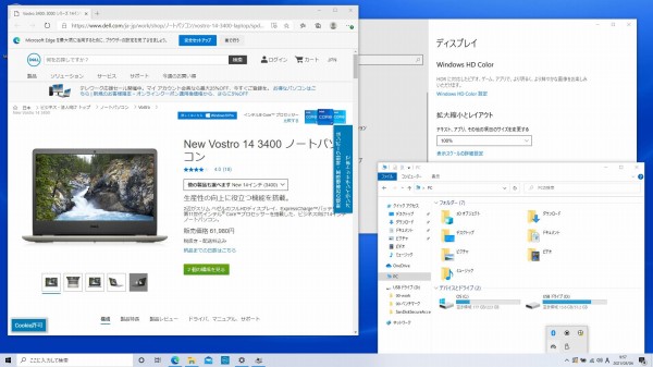 ![]() 最大解像度はフルHD対応の1920×1080ドット。拡大表示せず100%表示のままでも、見づらさは感じないですね。複数のウィンドウを横に並べて表示させることで、作業効率をアップできます。